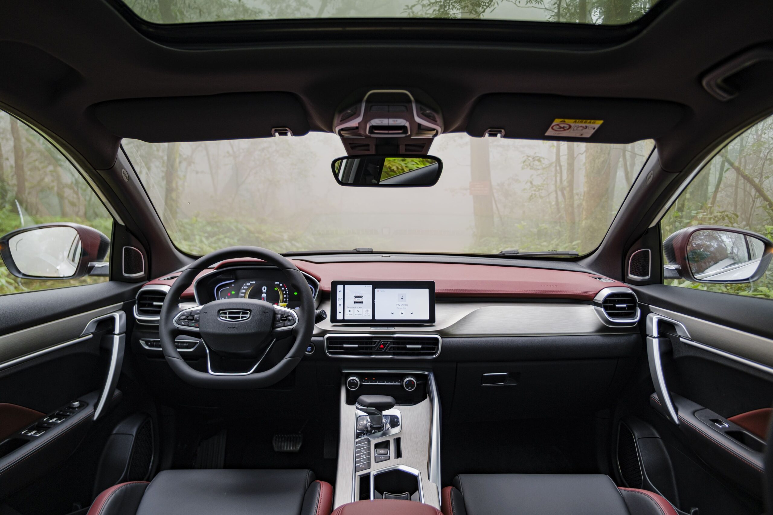 Nội thất của Geely Coolray có thiết kế thể thao, với bản cao cấp nhất trang bị những tính năng tiện ích như điều hòa tự động một vùng, kính một chạm cho tất cả các cửa, ghế da, ghế lái chỉnh điện, vô-lăng bọc da, và gương chiếu hậu tự động chống chói. Đặc biệt, cửa sổ trời toàn cảnh mang đến không gian rộng rãi và thoáng đãng, góp phần nâng cao trải nghiệm lái xe.